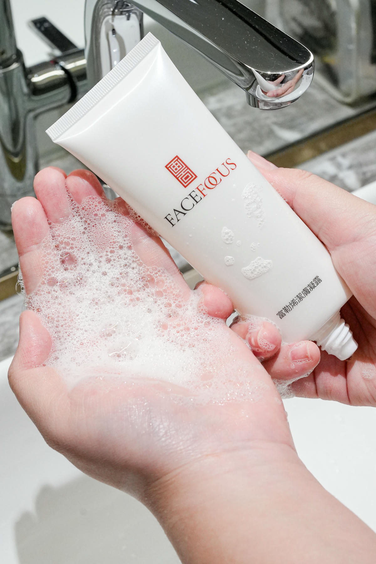 第一步是他們家的「鑽石潔顏露」,泡沫細緻又不刺激,清潔力剛剛好,洗完臉滑滑的但不緊繃,完全不怕乾裂💪