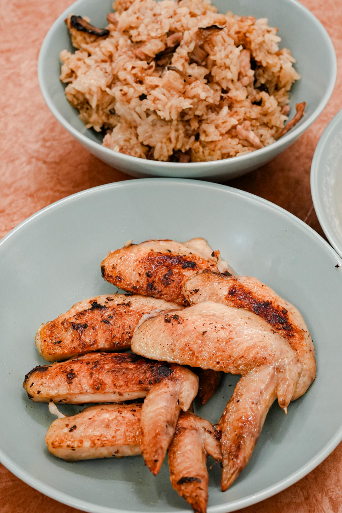 除了湯品,根藤的雞翅和棒棒腿也讓我愛不釋手。雞翅外皮帶著醬香,咬下去是微微的焦香與肉汁迸發,鹹香中帶著一點甜意,超級涮嘴💯